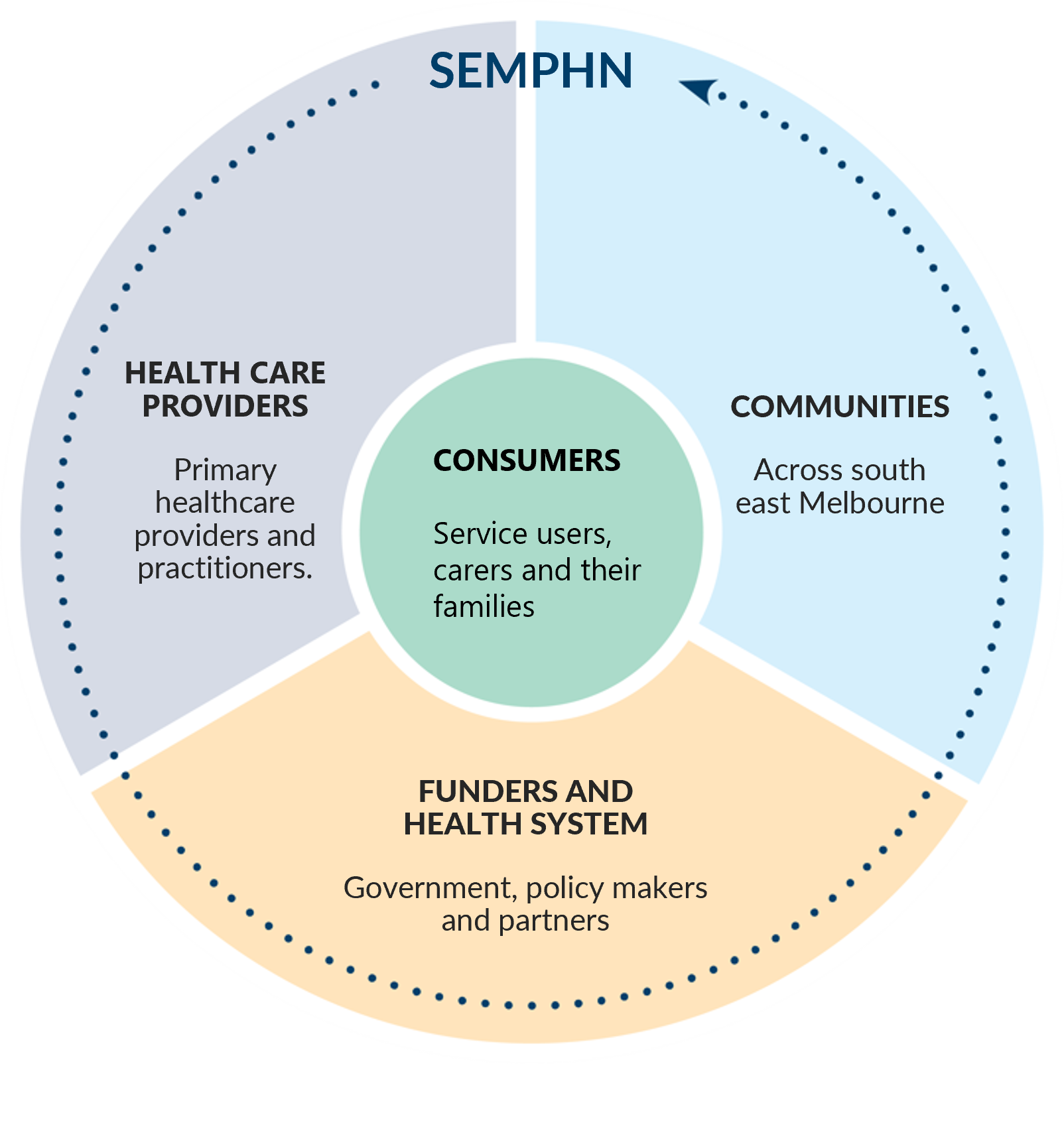 Together with local healthcare providers, dedicated professionals, individuals with lived experiences, SEMPHN staff, and our Board, Clinical and Community Council and reference groups, we aim to foster and support a more equitable, person-centred and seamless health system to positively impact health outcomes for our community.